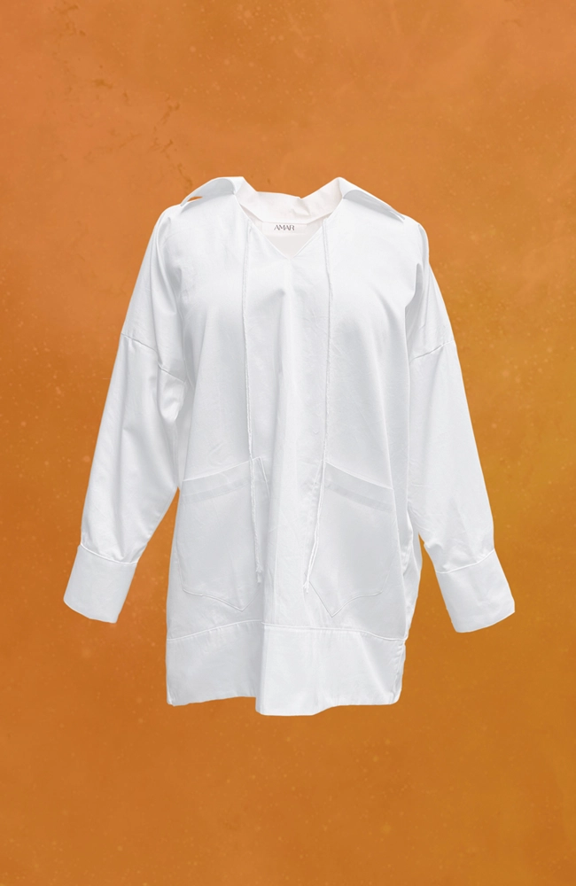 Hecho en algodón 100% natural, el Vestido Priscila ofrece una silueta suelta y escote en V que realzan la feminidad y la libertad de movimiento. Con bolsillos de parche y un estilo limpio, es una pieza versátil que puede usarse como blusa o vestido, reflejando la esencia consciente y atemporal de AMAR.