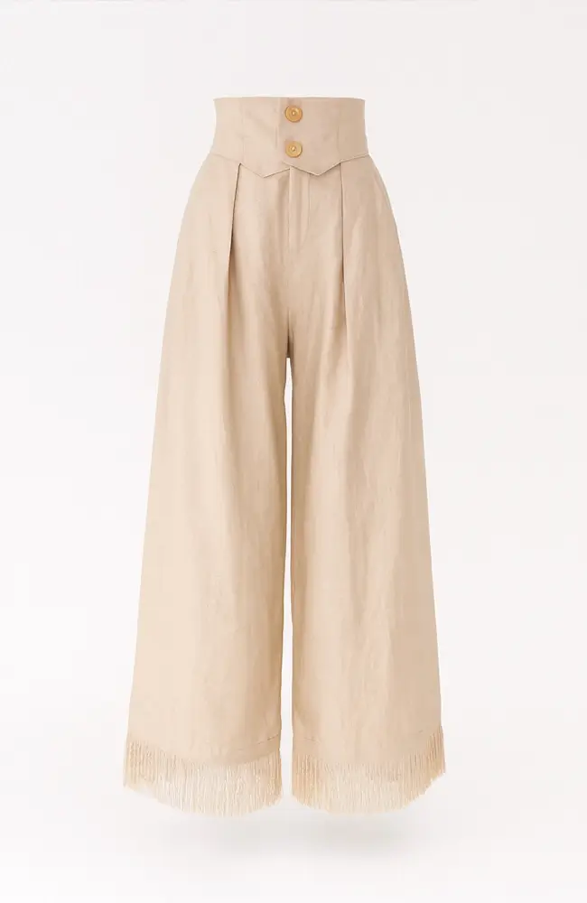 Hecha en lino 100% natural, la Falda Pantalón Rut une comodidad y elegancia con su cintura alta estructurada, doble botón de madera y bordes deshilados. Su diseño fluido realza la silueta y ofrece libertad de movimiento con estilo natural.
